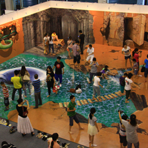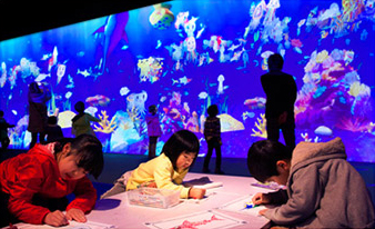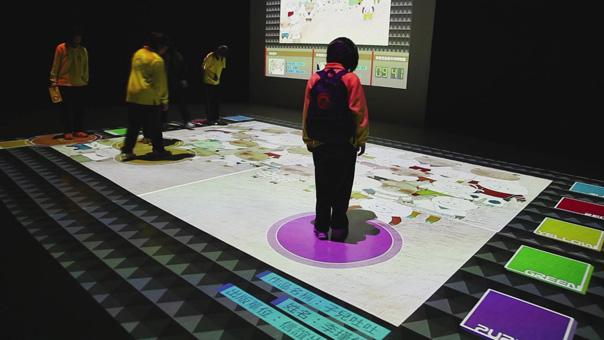 地面互動(dòng)投影系統(tǒng)采用懸掛在頂部的投影設(shè)備把影像效果投射到地面,當(dāng)參訪者走至投影區(qū)域時(shí),通過系統(tǒng)識(shí)別,參訪者可以直接使用雙腳或動(dòng)作與投影幕上的虛擬場景進(jìn)行交互,各種 ……