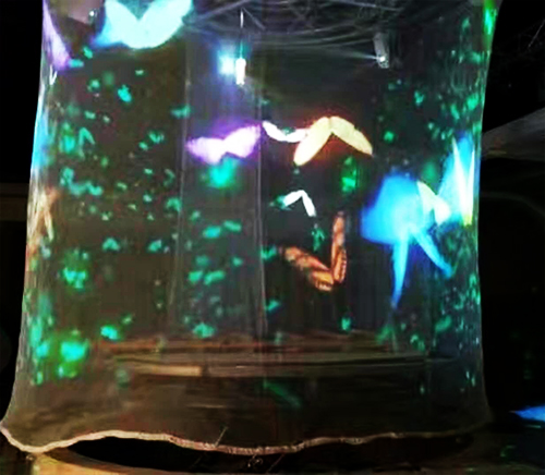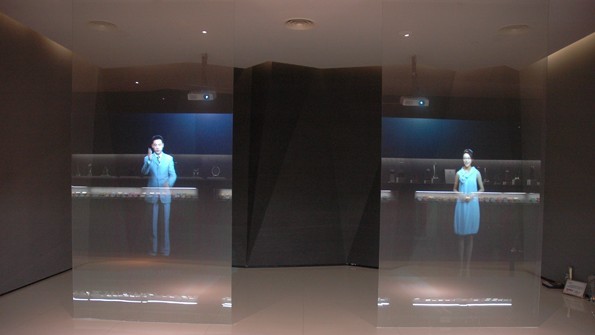 幻影成像系統(tǒng)也稱虛擬成像是基于“實(shí)景造型”和“幻影”的光學(xué)成像結(jié)合,將所拍攝的影像(人、物)投射到布景箱中的主體模型景觀中,演示故事的發(fā)展過程。繪聲繪色,虛幻莫測 ……