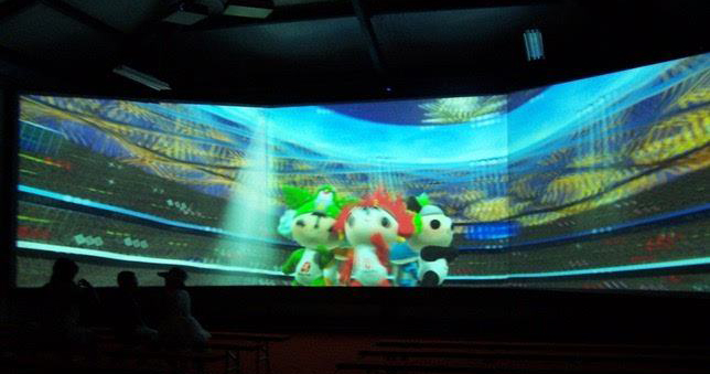 由多塊銀幕組成,通過多臺(tái)投影機(jī),采用投影融合技術(shù),創(chuàng)造出超大無縫的逼真畫面。利用電影自身特有的技術(shù)優(yōu)勢,使觀眾在高質(zhì)量的聲畫環(huán)境包圍之中,產(chǎn)生身臨其境的強(qiáng)烈的現(xiàn)場 ……